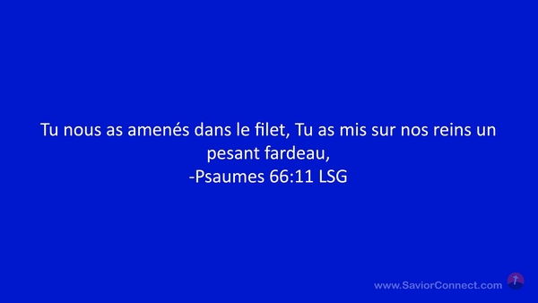 Tu nous as amenés dans le filet, Tu as mis sur nos reins un pesant fardeau, -Psaumes 66:11 LSG