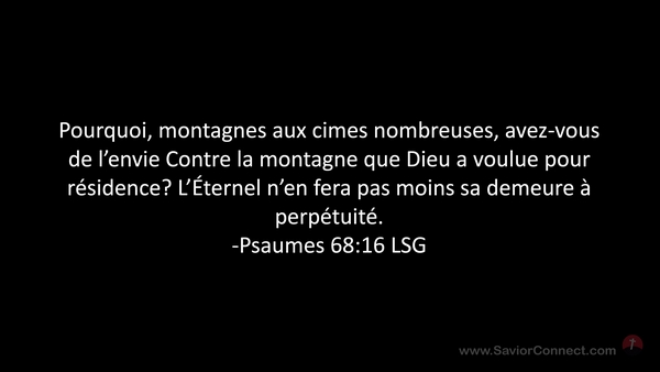 Pourquoi, montagnes aux cimes nombreuses, avez-vous de l'envie Contre la montagne que Dieu a voulue pour résidence? L'Éternel n'en fera pas moins sa demeure à perpétuité. -Psaumes 68:16 LSG
