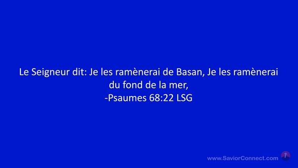 Le Seigneur dit: Je les ramènerai de Basan, Je les ramènerai du fond de la mer, -Psaumes 68:22 LSG