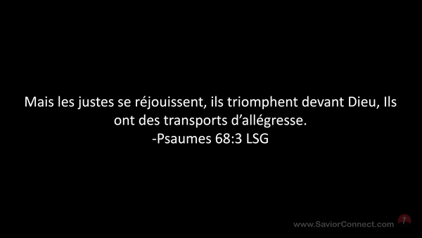 Mais les justes se réjouissent, ils triomphent devant Dieu, Ils ont des transports d'allégresse. -Psaumes 68:3 LSG