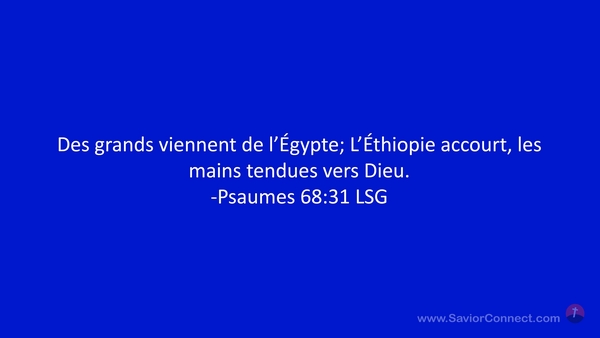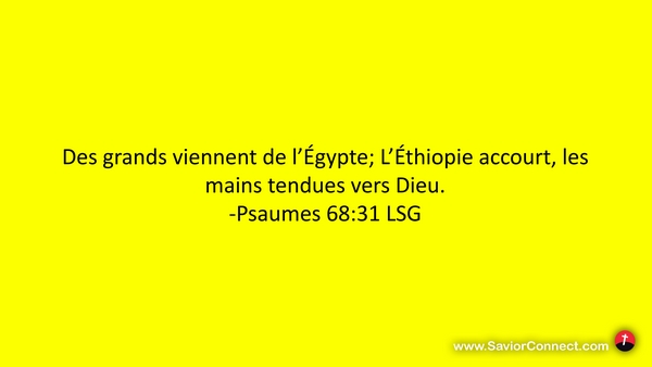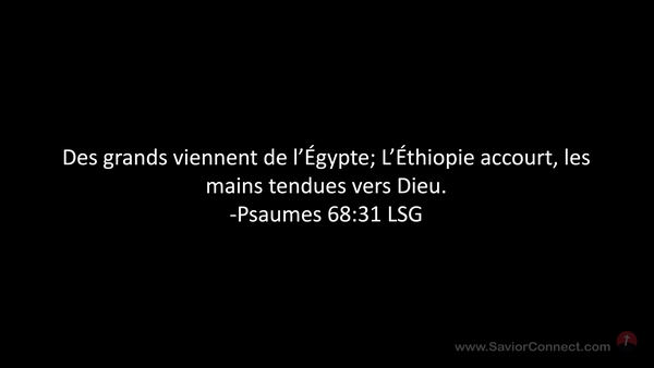 Des grands viennent de l'Égypte; L'Éthiopie accourt, les mains tendues vers Dieu. -Psaumes 68:31 LSG