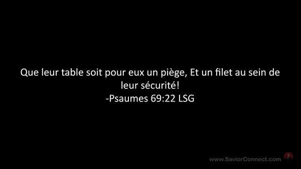 Que leur table soit pour eux un piège, Et un filet au sein de leur sécurité! -Psaumes 69:22 LSG