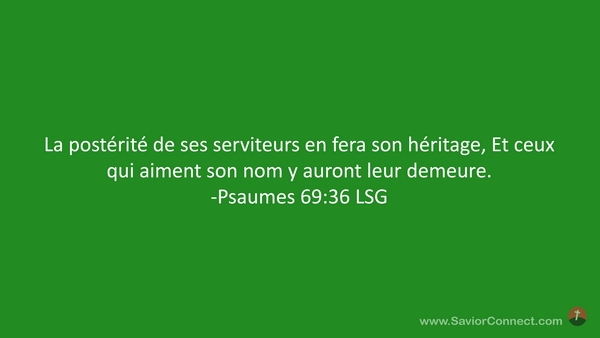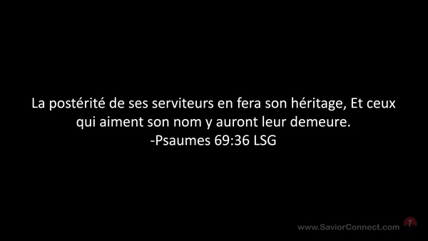 La postérité de ses serviteurs en fera son héritage, Et ceux qui aiment son nom y auront leur demeure. -Psaumes 69:36 LSG