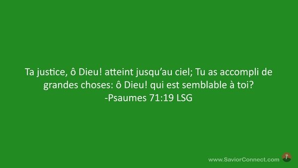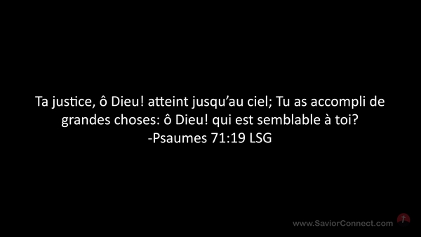 Ta justice, ô Dieu! atteint jusqu'au ciel; Tu as accompli de grandes choses: ô Dieu! qui est semblable à toi? -Psaumes 71:19 LSG