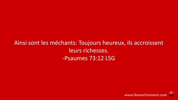 Ainsi sont les méchants: Toujours heureux, ils accroissent leurs richesses. -Psaumes 73:12 LSG