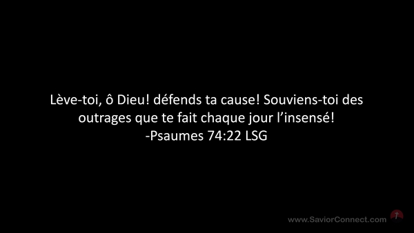 Lève-toi, ô Dieu! défends ta cause! Souviens-toi des outrages que te fait chaque jour l'insensé! -Psaumes 74:22 LSG