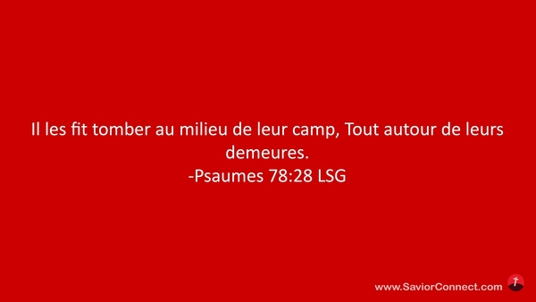Il les fit tomber au milieu de leur camp, Tout autour de leurs demeures. -Psaumes 78:28 LSG