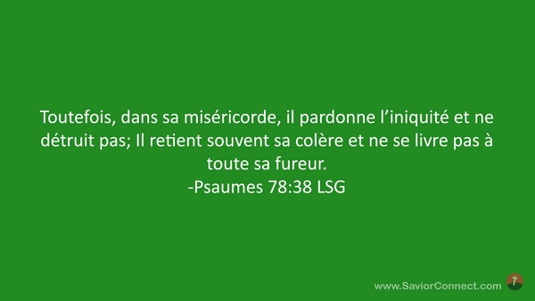 Toutefois, dans sa miséricorde, il pardonne l'iniquité et ne détruit pas; Il retient souvent sa colère et ne se livre pas à toute sa fureur. -Psaumes 78:38 LSG