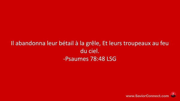 Il abandonna leur bétail à la grêle, Et leurs troupeaux au feu du ciel. -Psaumes 78:48 LSG