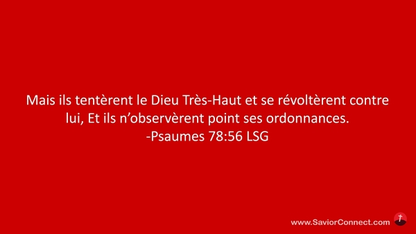 Mais ils tentèrent le Dieu Très-Haut et se révoltèrent contre lui, Et ils n'observèrent point ses ordonnances. -Psaumes 78:56 LSG