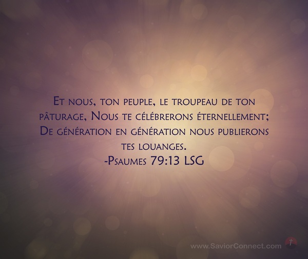 Et nous, ton peuple, le troupeau de ton pâturage, Nous te célébrerons éternellement; De génération en génération nous publierons tes louanges. -Psaumes 79:13 LSG