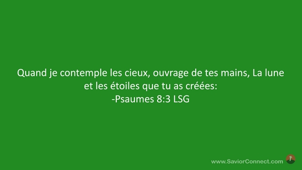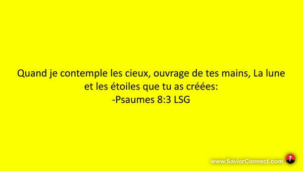 Quand je contemple les cieux, ouvrage de tes mains, La lune et les étoiles que tu as créées: -Psaumes 8:3 LSG