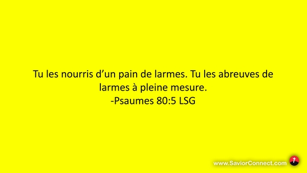 Tu les nourris d'un pain de larmes. Tu les abreuves de larmes à pleine mesure. -Psaumes 80:5 LSG