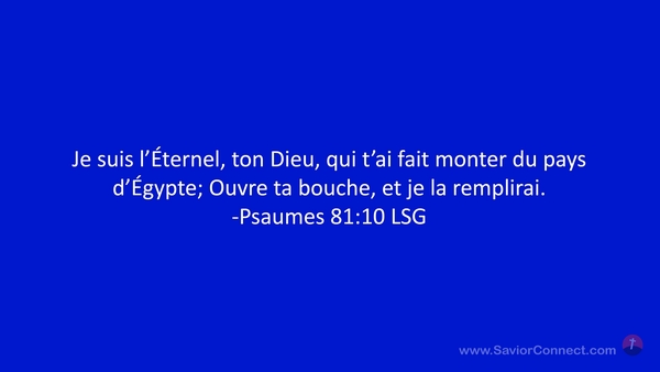 Je suis l'Éternel, ton Dieu, qui t'ai fait monter du pays d'Égypte; Ouvre ta bouche, et je la remplirai. -Psaumes 81:10 LSG