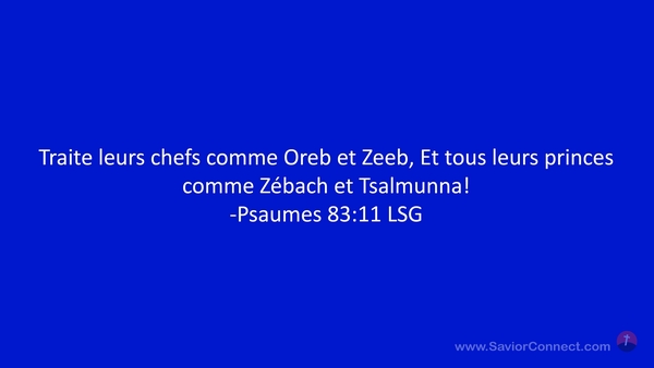 Traite leurs chefs comme Oreb et Zeeb, Et tous leurs princes comme Zébach et Tsalmunna! -Psaumes 83:11 LSG