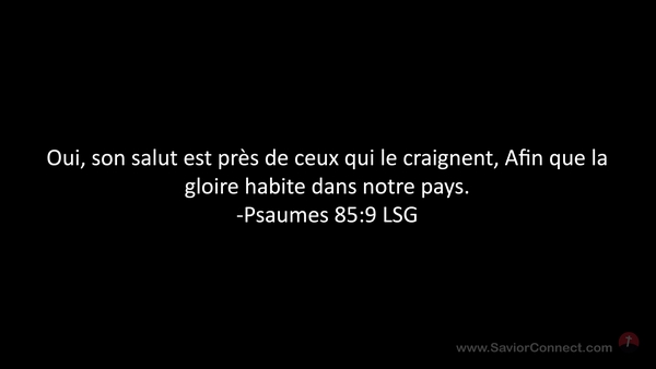 Oui, son salut est près de ceux qui le craignent, Afin que la gloire habite dans notre pays. -Psaumes 85:9 LSG