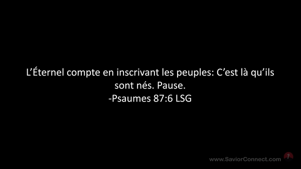L'Éternel compte en inscrivant les peuples: C'est là qu'ils sont nés. Pause. -Psaumes 87:6 LSG
