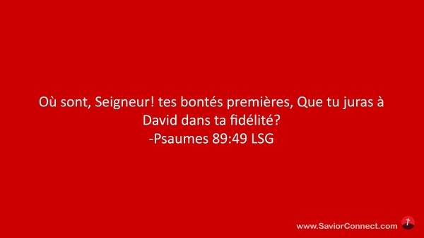 Où sont, Seigneur! tes bontés premières, Que tu juras à David dans ta fidélité? -Psaumes 89:49 LSG