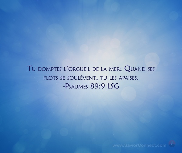 Tu domptes l'orgueil de la mer; Quand ses flots se soulèvent, tu les apaises. -Psaumes 89:9 LSG