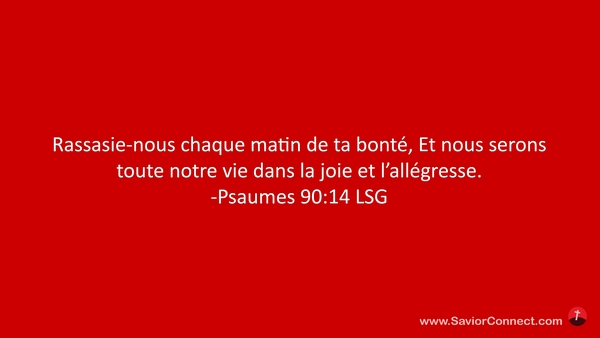 Rassasie-nous chaque matin de ta bonté, Et nous serons toute notre vie dans la joie et l'allégresse. -Psaumes 90:14 LSG