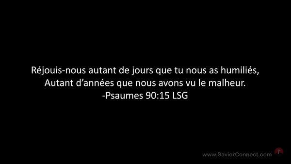 Réjouis-nous autant de jours que tu nous as humiliés, Autant d'années que nous avons vu le malheur. -Psaumes 90:15 LSG