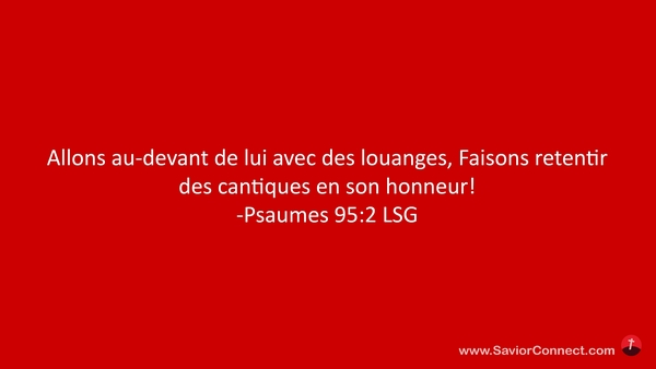 Allons au-devant de lui avec des louanges, Faisons retentir des cantiques en son honneur! -Psaumes 95:2 LSG