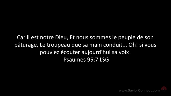 Car il est notre Dieu, Et nous sommes le peuple de son pâturage, Le troupeau que sa main conduit... Oh! si vous pouviez écouter aujourd'hui sa voix! -Psaumes 95:7 LSG