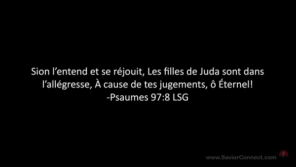 Sion l'entend et se réjouit, Les filles de Juda sont dans l'allégresse, À cause de tes jugements, ô Éternel! -Psaumes 97:8 LSG