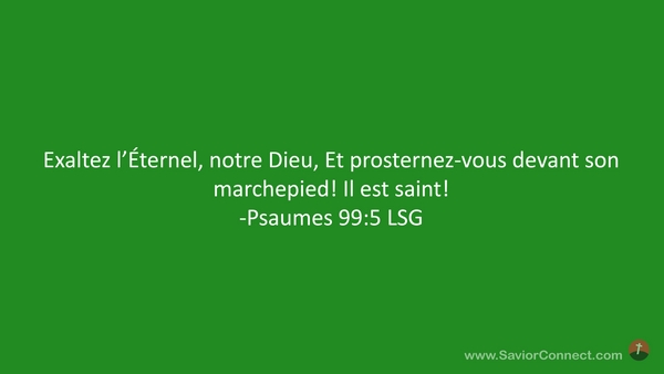 Exaltez l'Éternel, notre Dieu, Et prosternez-vous devant son marchepied! Il est saint! -Psaumes 99:5 LSG