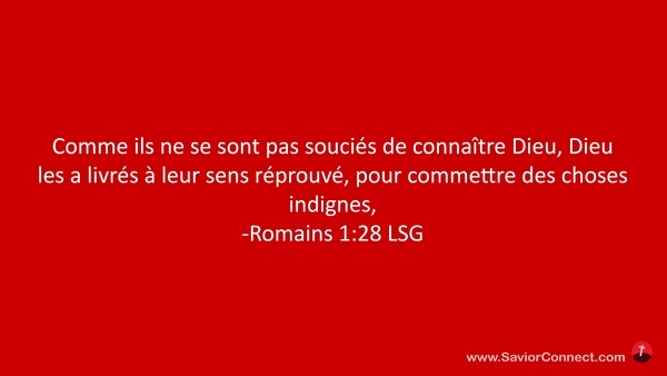 Comme ils ne se sont pas souciés de connaître Dieu, Dieu les a livrés à leur sens réprouvé, pour commettre des choses indignes, -Romains 1:28 LSG
