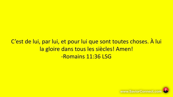C'est de lui, par lui, et pour lui que sont toutes choses. À lui la gloire dans tous les siècles! Amen! -Romains 11:36 LSG