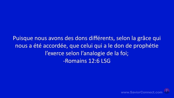 Puisque nous avons des dons différents, selon la grâce qui nous a été accordée, que celui qui a le don de prophétie l'exerce selon l'analogie de la foi; -Romains 12:6 LSG