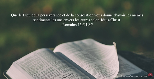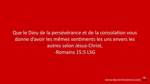 Que le Dieu de la persévérance et de la consolation vous donne d'avoir les mêmes sentiments les uns envers les autres selon Jésus-Christ, -Romains 15:5 LSG