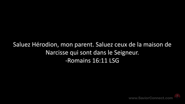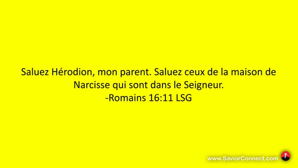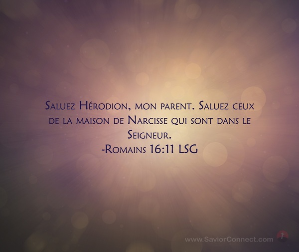 Saluez Hérodion, mon parent. Saluez ceux de la maison de Narcisse qui sont dans le Seigneur. -Romains 16:11 LSG