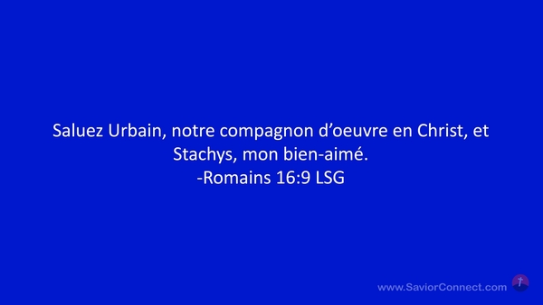 Saluez Urbain, notre compagnon d'oeuvre en Christ, et Stachys, mon bien-aimé. -Romains 16:9 LSG