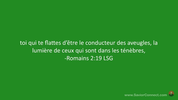 toi qui te flattes d'être le conducteur des aveugles, la lumière de ceux qui sont dans les ténèbres, -Romains 2:19 LSG