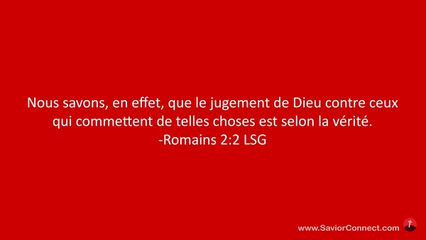 Nous savons, en effet, que le jugement de Dieu contre ceux qui commettent de telles choses est selon la vérité. -Romains 2:2 LSG
