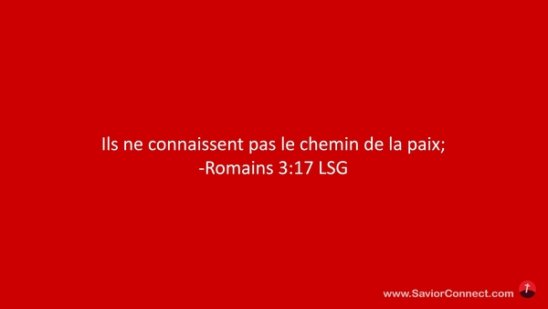 Ils ne connaissent pas le chemin de la paix; -Romains 3:17 LSG