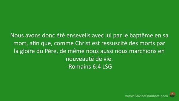 Nous avons donc été ensevelis avec lui par le baptême en sa mort, afin que, comme Christ est ressuscité des morts par la gloire du Père, de même nous aussi nous marchions en nouveauté de vie. -Romains 6:4 LSG