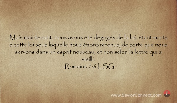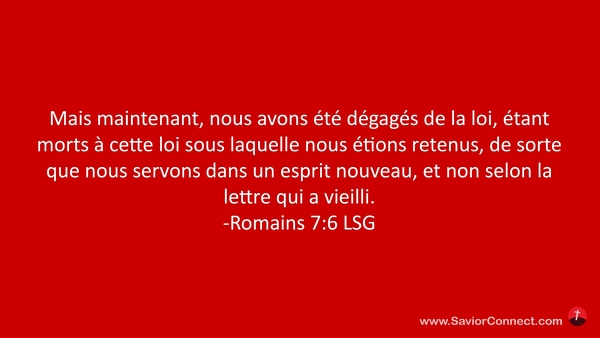 Mais maintenant, nous avons été dégagés de la loi, étant morts à cette loi sous laquelle nous étions retenus, de sorte que nous servons dans un esprit nouveau, et non selon la lettre qui a vieilli. -Romains 7:6 LSG