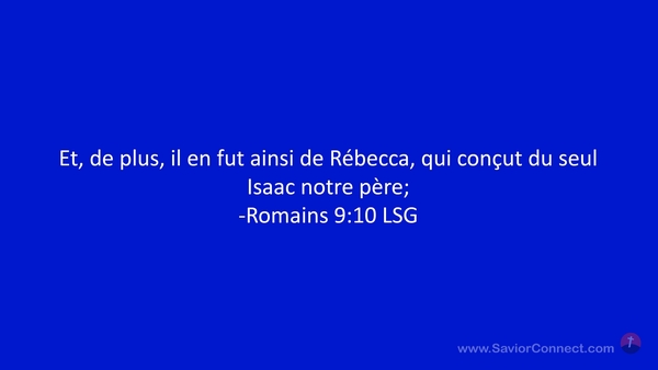 Et, de plus, il en fut ainsi de Rébecca, qui conçut du seul Isaac notre père; -Romains 9:10 LSG