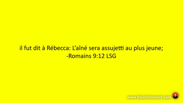 il fut dit à Rébecca: L'aîné sera assujetti au plus jeune; -Romains 9:12 LSG