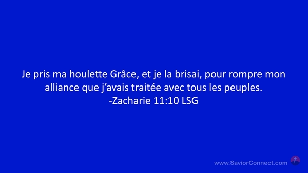 Je pris ma houlette Grâce, et je la brisai, pour rompre mon alliance que j'avais traitée avec tous les peuples. -Zacharie 11:10 LSG