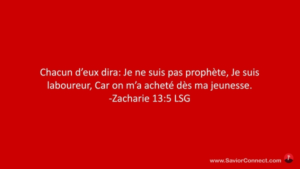 Chacun d'eux dira: Je ne suis pas prophète, Je suis laboureur, Car on m'a acheté dès ma jeunesse. -Zacharie 13:5 LSG