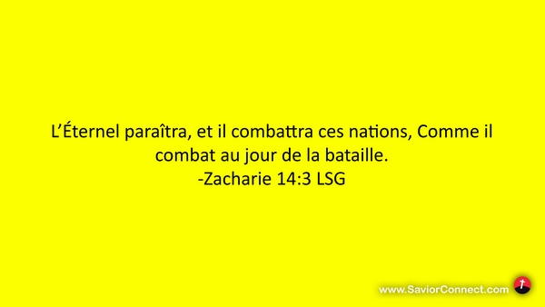 L'Éternel paraîtra, et il combattra ces nations, Comme il combat au jour de la bataille. -Zacharie 14:3 LSG