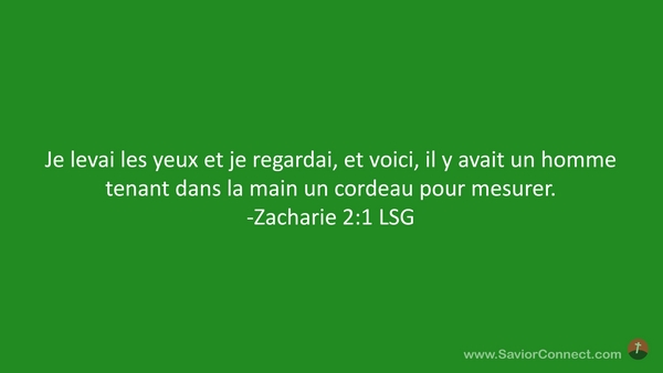 Je levai les yeux et je regardai, et voici, il y avait un homme tenant dans la main un cordeau pour mesurer. -Zacharie 2:1 LSG