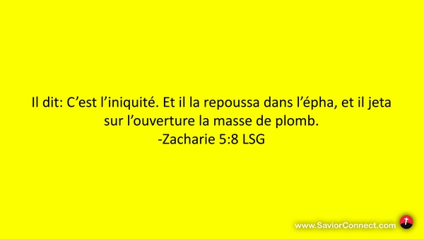 Il dit: C'est l'iniquité. Et il la repoussa dans l'épha, et il jeta sur l'ouverture la masse de plomb. -Zacharie 5:8 LSG