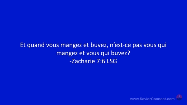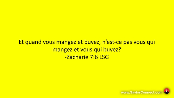 Et quand vous mangez et buvez, n'est-ce pas vous qui mangez et vous qui buvez? -Zacharie 7:6 LSG