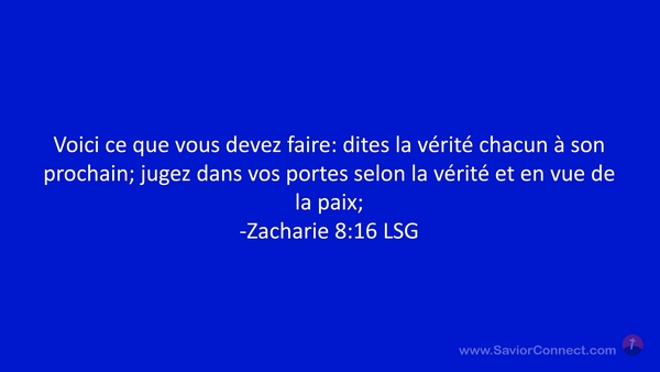 Voici ce que vous devez faire: dites la vérité chacun à son prochain; jugez dans vos portes selon la vérité et en vue de la paix; -Zacharie 8:16 LSG