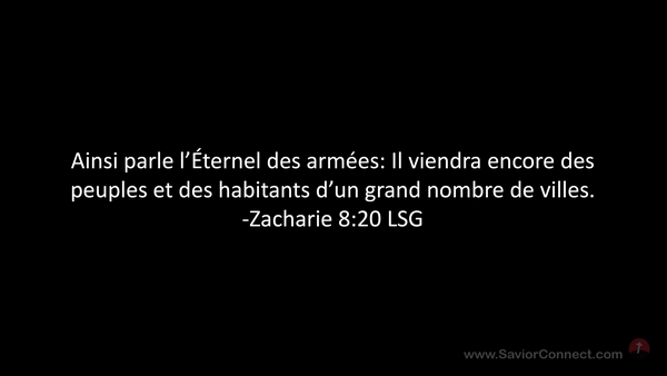 Ainsi parle l'Éternel des armées: Il viendra encore des peuples et des habitants d'un grand nombre de villes. -Zacharie 8:20 LSG